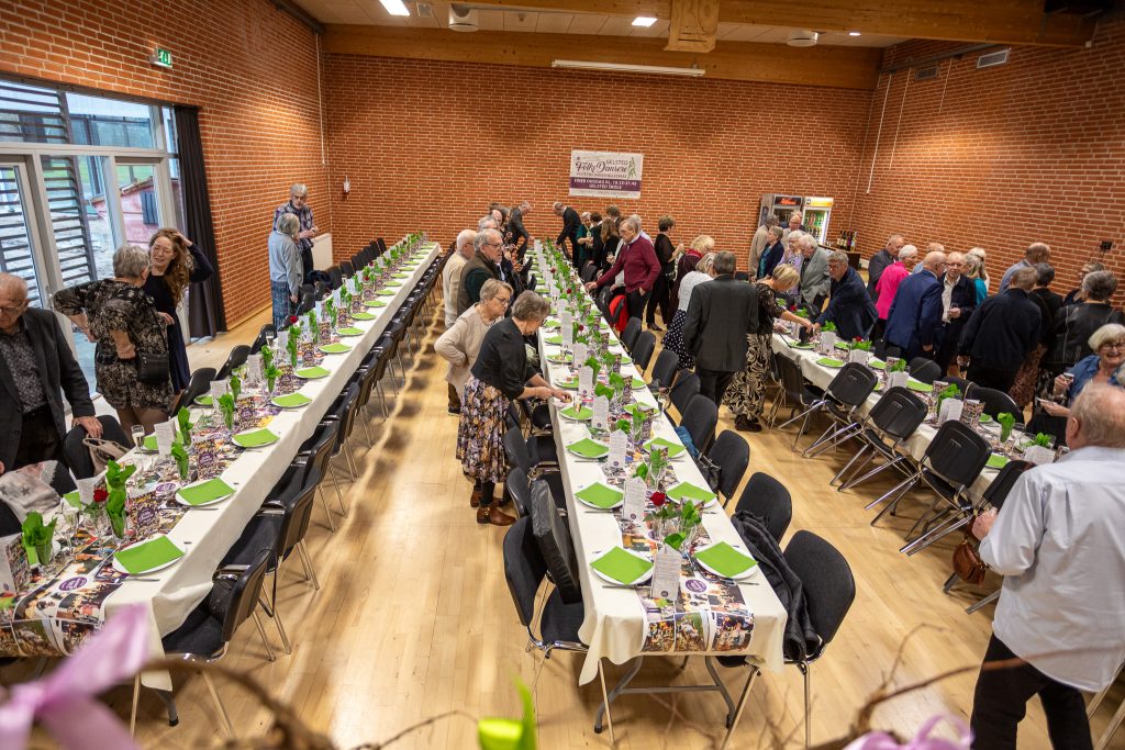 Også gæster fra mange andre fynske folkedanserforeninger havde lyst til at tilbringe en glad aften sammen med os, så det blev en rigtig dejlig og festlig jubilæumsfest med 116 deltagere.